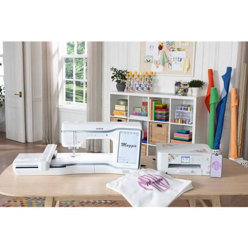 | Basic Features | 523 built-in embroidery designs 26 built-in alphabet fonts Max embroidery area: 9.5" x 14" Max embroidery speed: 1050 spm LCD display (touchscreen) 2 USB ports & USB connectivity Wireless enabled Automatic thread cutter Automatic thread tension Adjustable presser foot pressure Adjustable screen brightness Built-in memory Bobbin & upper thread sensors Quick-set bobbin system Needle threader (automatic) Needle up/down position LED lighting Start/Stop button Workspace: 11.25" x 11.25" |