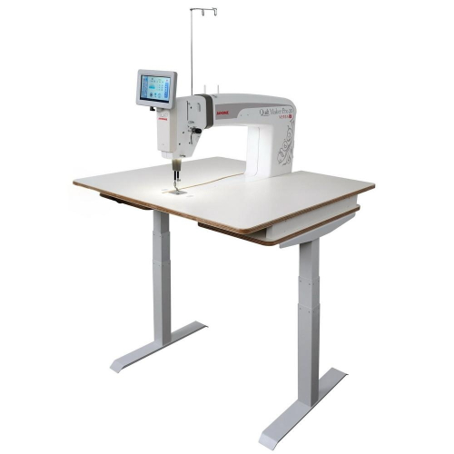 Sew with comfort no matter how you quilt! The Quilt Maker Pro 20 Versa ST sports a 20” throat quilting machine that can be mounted either in an electronic lift table ,which can be set to a variety of heights. Whether you prefer to sit, stand, or use a stool for your quilting, you can find a comfortable setting.