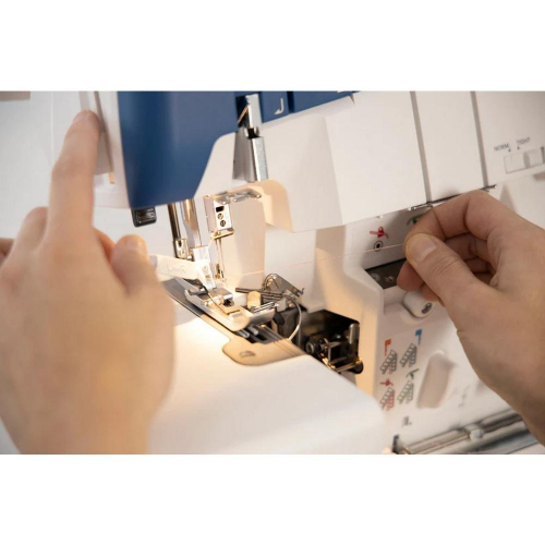 - Built-In-2-Thread Converter - Easily convert your overlock machine to 2-thread stitching with the built-in converter.