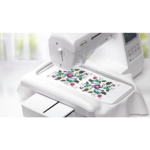 | Embroidery Capabilities | 141 built-in embroidery designs (including 90 Baby Lock exclusive designs) 140 frame patterns 13 font styles (upper & lower case) Extra large block alphabet & characters (32 total) Exclusive script alphabet & characters (72 total) Embroidery field up to 5" x 7" (130 x 180 mm) Max 200,000 stitches per design Memory up to 1MB for saving designs Customize pattern & thumbnail background colors |