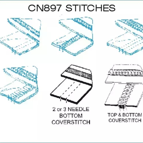 The Consew CN897CV-1 coverstitch machine contains a variety of features that include, but are not limited to: V-series High Speed Coverstitch Machines With Fully Automatic Lubrication, Differential Feed With Micrometric Adjustment, Pushbutton Stitch Regulator and Thread Lubricating And Needle Cooling System. Also available: CN-897BVC for Binding Attachments.