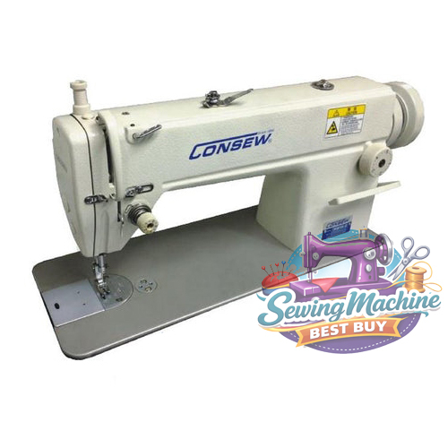 The Consew Sewing Machine contains a variety of features the include, but not limited to: Ultra High Speed, Single Needle, Drop Feed, Lockstitch Machine with a Stainless Steel Bed!